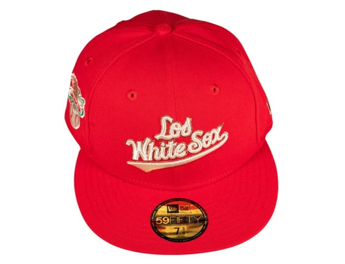 Headwear store 606 Brims serves a baseball cap that will help you stand out amongst the crowd with their recent release. Here is the Chicago White Sox American League Red 59Fifty Fitted Hat. They constructed the crown and uppervisor of this cap using red fabric. The 3D front embroidery features the Chicago White Sox “Los White Sox” script logo in metallic threading. They then embroidered the American League side patch on the right panel. The undervisor is in green to add that vintage vibe. The New Era Flag is embroidered on the left panel, and on the back is the MLB Batterman. Available here.