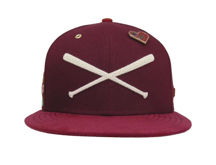 The staple headwear piece of JustFitteds gets a romantic rendition for its latest colorway. Check out the Crossed Bats Logo Valentine 2026 59Fifty Fitted Hat. The crown is in maroon, and they used metal eyelets on the panels. The Crossed Bats logo appears in metallic iris chainstitch embroidery for the front design. The right panel features a pink rose embroidery, while the left has the New Era Flag rendered using gold chrome metal. The bill has a maroon suede uppervisor and a brick red undervisor with pink embroidery. At the back is a text embroidery. Online stocks have sold out, better check out JustFitteds Berlin or Hamburg if you want one.