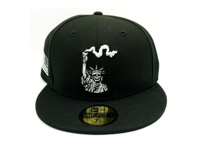 One of the custom fitteds from The Capologists gets its third installment. Check out the Liberty Is Dead V3 Tony’s Choice 59Fifty Fitted Hat. They constructed this cap using black fabric for the dome & the uppervisor. The front design has the Liberty Is Dead icon in white glow-in-the-dark raised embroidery. They then embroidered the American flag on the right panel of the dome. The New Era Flag on the left panel appears in white to add more contrast to the cap design. The back embroidery features The Capologists logo to represent the brand. Get yours here before stocks run out.