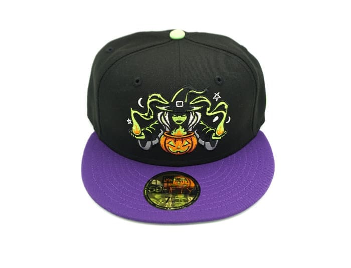 The Capoligists run it back with one of their custom New Era fitteds, this time utilizing bright colors to liven up the theme. Check out the Witches Brew V2 59Fifty Fitted Hat. The crown of this cap has black panels and a volt green button on top. The Witches Brew character is embroidered in full colors for the front design. The bill has a purple uppervisor paired with a volt green undervisor. They added more contrast by also using volt green for the New Era Flag embroidered on the left panel. View the complete design & purchase details here.